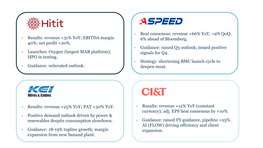 Source: Bloomberg, as of 30 September 2025. During the early-year volatility, we increased our exposure to existing high-conviction names and selectively added new names from our watchlist by taking advantage of attractive valuations and temporary dislocations from companies that we believe were unfairly impacted by broader market sentiment. With tariff related volatility likely subsiding, quality names, should now be better placed for a recovery.