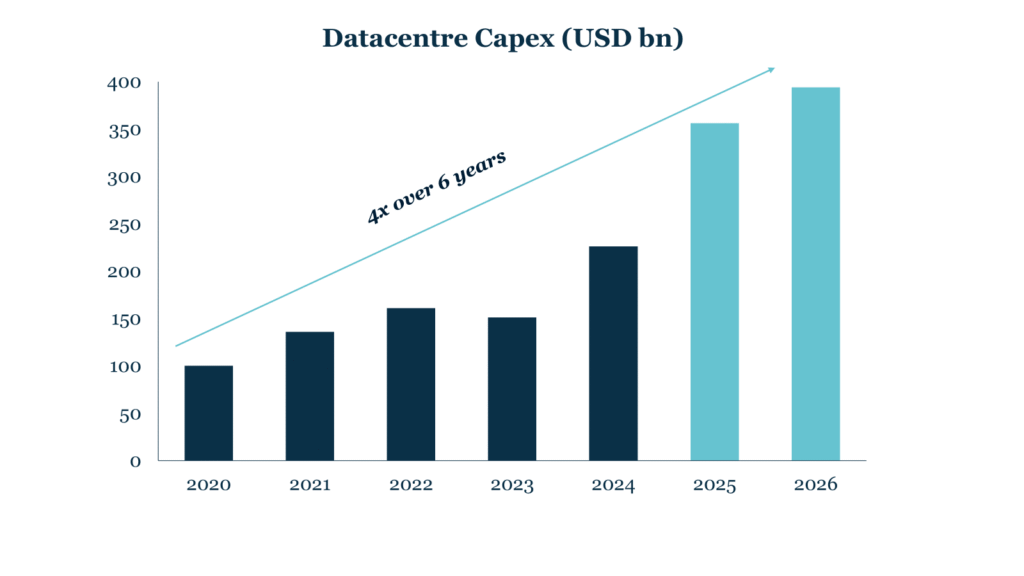 Source: CL Taiwan, Daiwa. This strength in US and Chinese technology has also supported companies, including many in our portfolio, in emerging markets like Taiwan and South Korea which play vital roles in AI supply chains. For example, NVIDIA’s Rubin GPU rollout and rising ASIC volumes are boosting demand across the semiconductor supply chain, benefitting companies such as Elite Material, a global leader in high-performance copper clad laminates used in printed circuit boards. In its Q2 report, Elite announced an additional round of capacity expansion in 2026 due to strong demand, with revenue up 40% YoY. Other examples include Chroma raising its guidance for system-level testing revenue in light of rising demand from leading ASIC and GPU projects.