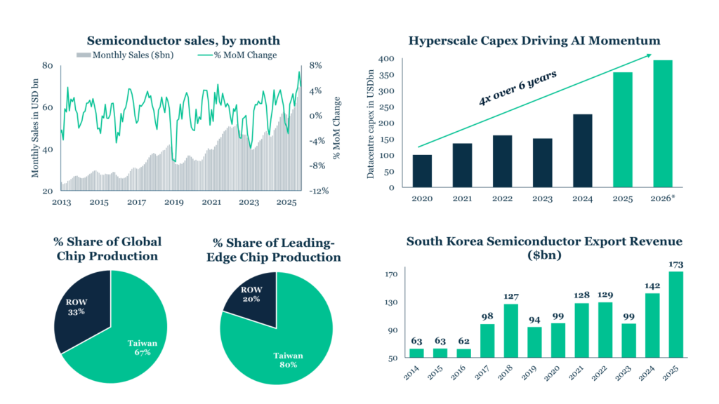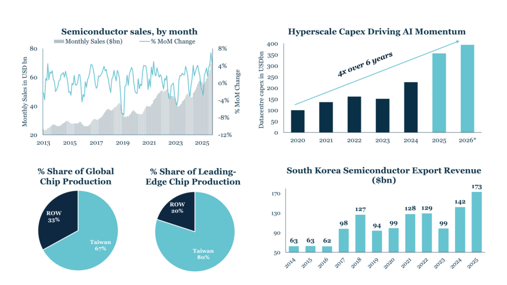 Furthermore, a number of country-specific tailwinds should support our portfolio exposures. Taiwan continues to benefit from a powerful semiconductor investment cycle and a globally competitive innovation ecosystem. South Korea is advancing structurally in high-end manufacturing, materials and automation, where we continue to find globally competitive businesses trading at attractive valuations.