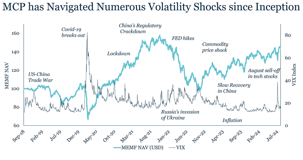 Navigating volatility has always been a priority for the MCP investment team, not just to mitigate risks but also to proactively capitalise on the opportunities that market fluctuations present. Given the recent spike in volatility this summer, we thought it was an opportune time to share our insights on navigating market turbulence, drawing on Carlos Hardenberg’s 25+ years of experience. Beginning his career during the Asian financial crisis, Carlos has navigated the dotcom bubble, the global financial crash, the Covid-19 pandemic and numerous other market disruptions. His experience as a long-only equities investor has only reinforced the idea that volatility can be your friend if you use it effectively.