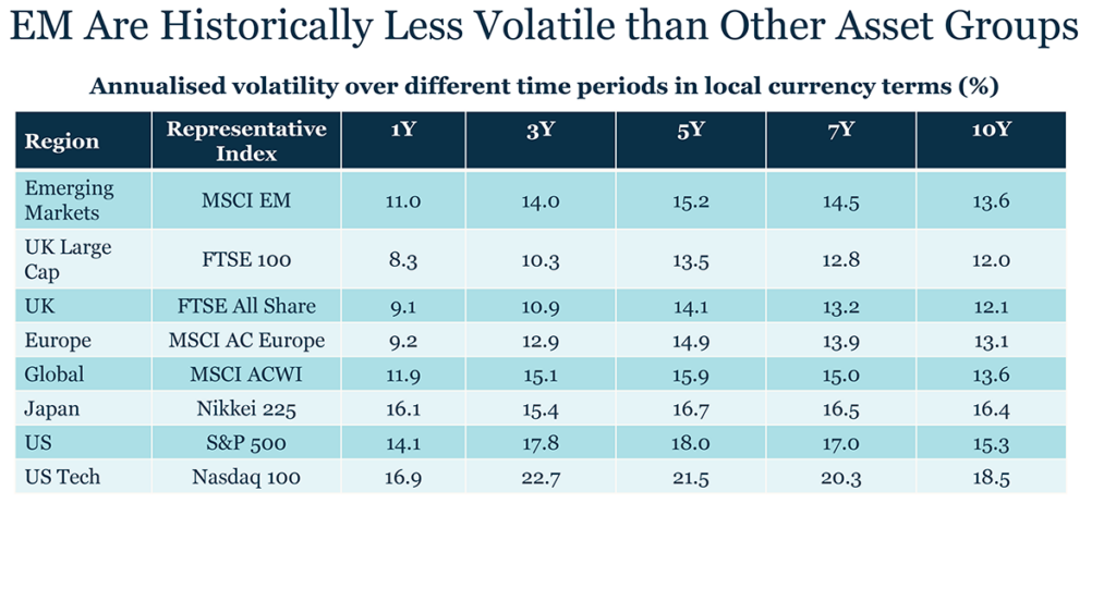 The bottom line is to stay disciplined and maintain a long-term perspective as markets tend to mean revert. Therefore, we believe by focusing on quality fundamentals rather than short term trends, volatility can be more effectively managed and even leveraged. In addition, falling interest rates have put EM back on the table as an attractive investment case for many, but we believe it is important to optimise EM investments via under-covered and mispriced small and mid-cap companies that will benefit from growing trends, such as AI, renewables and the growing consumer and middle classes, as well as diversifying your portfolio beyond the most concentrated stocks.